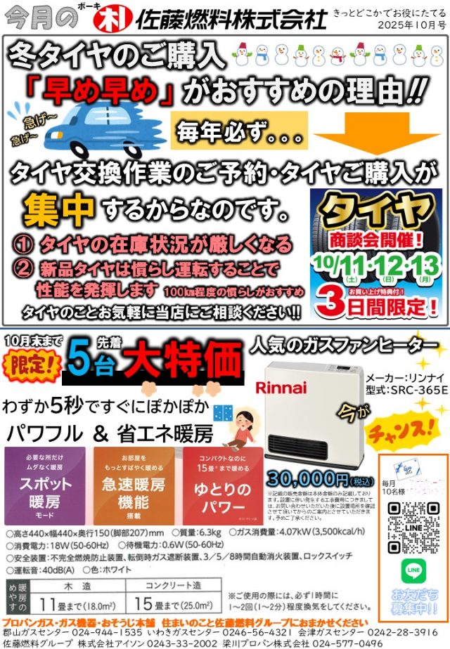 今月のボーキ佐藤燃料2025年10月号をお届けいたします。