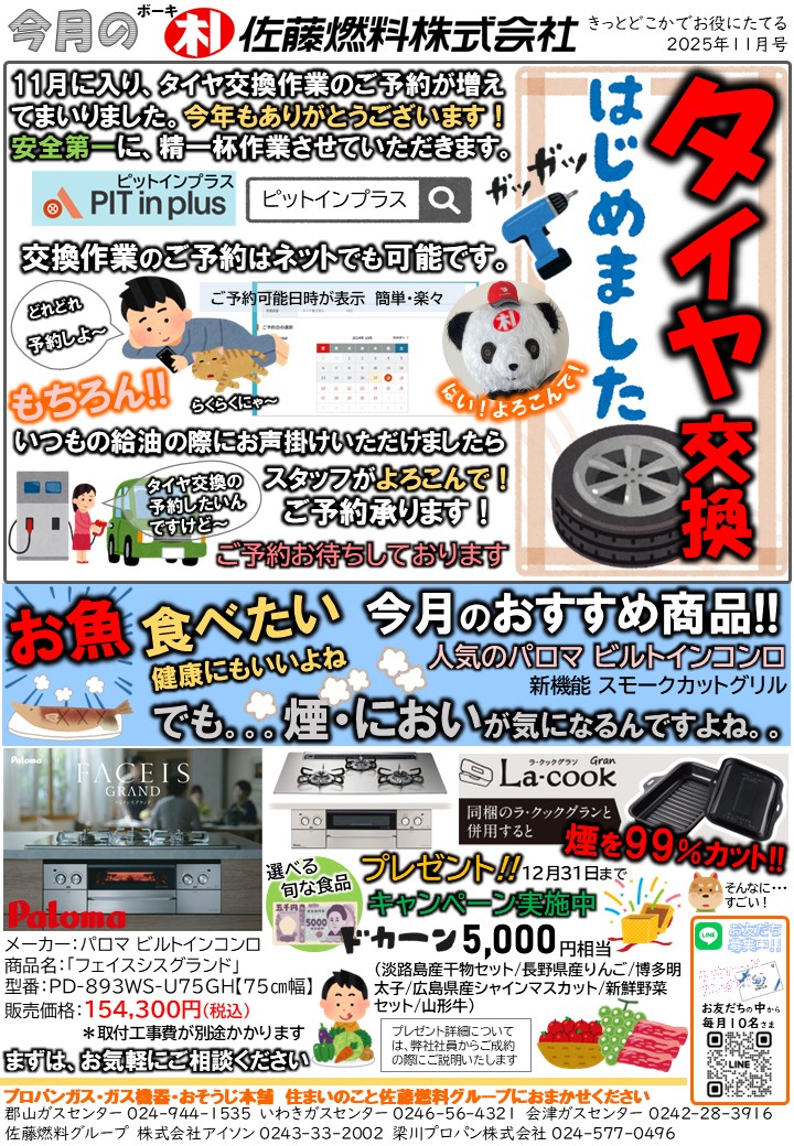 今月のボーキ佐藤燃料2025年11月号をお届けいたします。