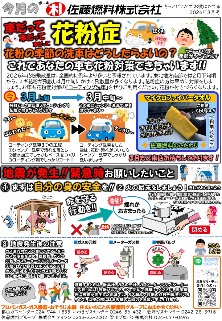 今月のボーキ佐藤燃料2026年3月号をお届けいたします。